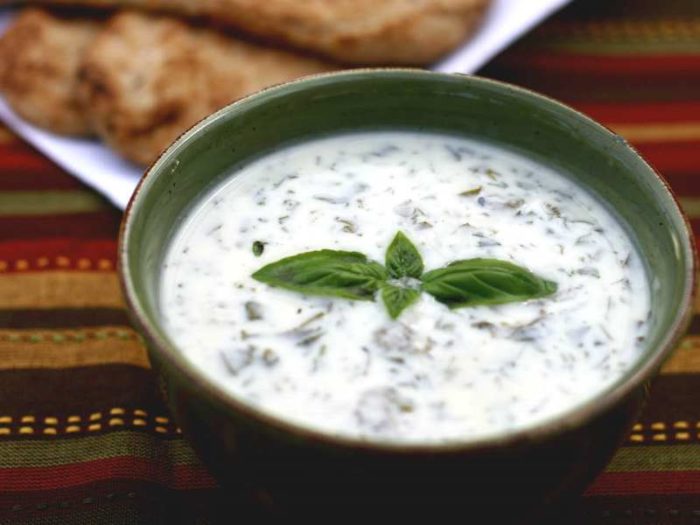 - У цей час можна приготувати соус: подрібнити часник, нарізати зелень. Змішати це все з мацоні. Подавати його на стіл потрібно з готовою стравою.