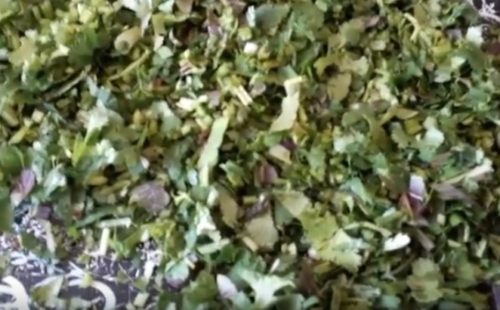 - У мультиварку налити олію в невеликій кількості. Дрібно порубаними петрушкою та кропом застелити дно ємності.