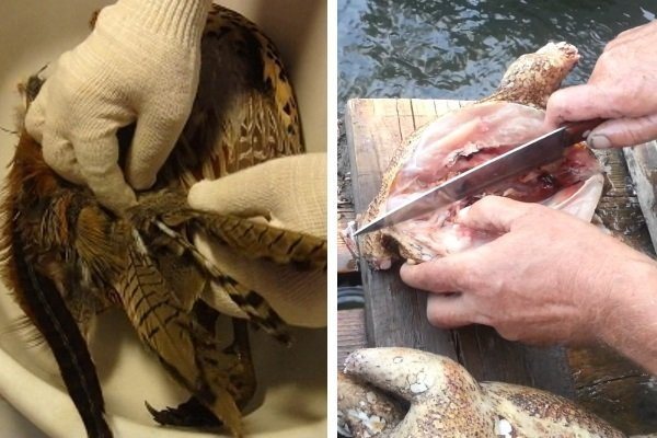 Перед тим як приготувати видобутого на полюванні птаха, його необхідно обробити. Тушку на кілька хвилин занурюють у таз із гарячою водою, щоб вона встигла розпаритись і легше обскубувати. Видаляти пір’я краще проти спрямування їх росту, акуратно захоплюючи їх і намагаючись не пошкодити цілісність шкіри.