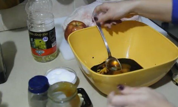 3. Помістіть в отриманий соус, прямо таки занурте добре і ретельно полийте її. Усередині теж промажте маринадом.