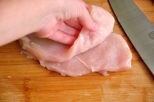 Тушку перед приготуванням помийте. Якщо залишаться пір’їни, їх вищипайте. Обробіть птаха невеликими шматочками, при цьому враховуйте, що чим менше вони будуть, тим швидше приготується м’ясо.
