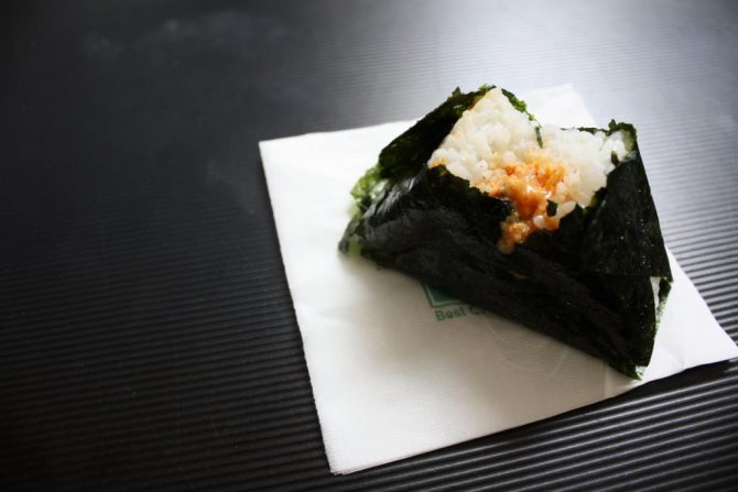 Охолоджений заправлений рис викладіть на лист норі. Рис