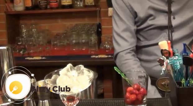 - У келих напою покласти шматочки льоду, повністю наповнивши його. Так ми зможемо охолодити ємність перед подачею напою.