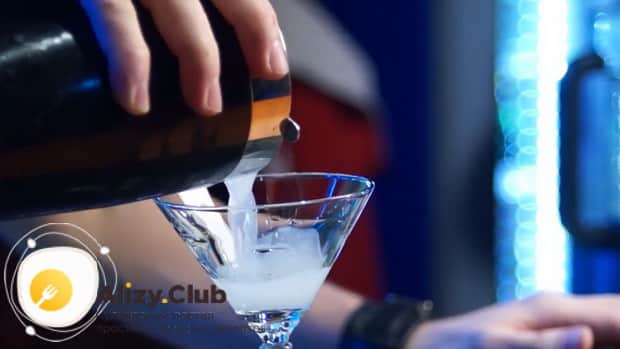 - Готовою сумішшю наповніть заздалегідь охолоджений келих, пропустивши її через ситечко;