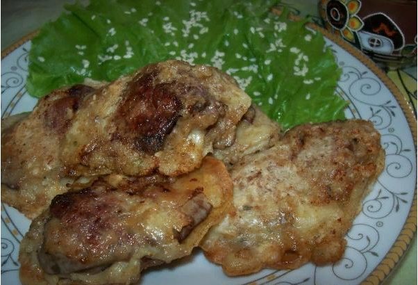 4. Куряча печінка з цибулею, смажена у клярі