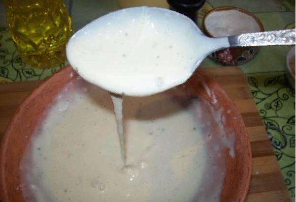 1. Для приготування кляру миску розбити яйця, покласти сметану, сіль, перець, часник, пропущений через прес. Додати борошно та вилкою або віночками добре перемішати масу до однорідного стану. Кляр повинен вийти досить густий, щоб він не стікав зі шматочків лівера.