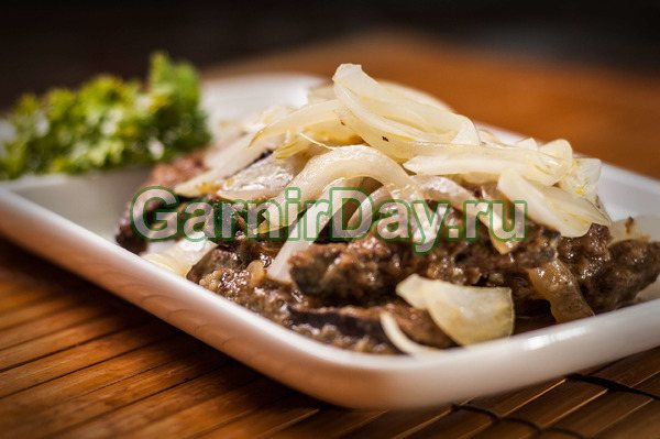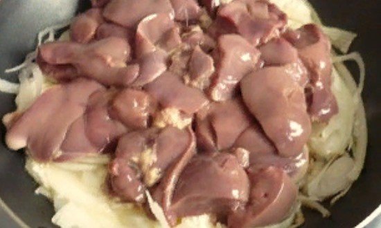 Під час подачі цибулю викласти на підсмажену печінку.