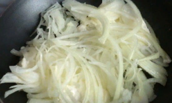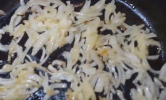 Цибулю, що розрізає на півкільця, обсмажувати до появи м’якості, злегка присолити.