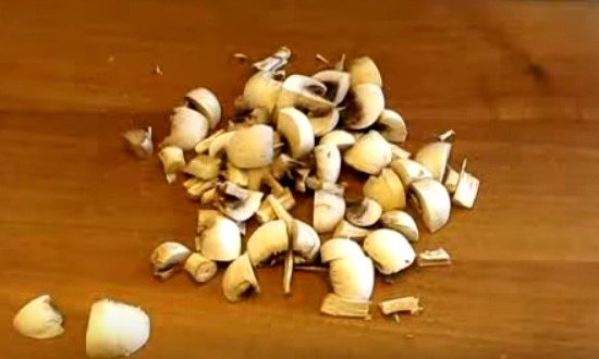 Скибочки не повинні бути занадто тонкими, мінімум 0,5 см. Так як при перемішуванні вони зламаються на дрібні шматочки