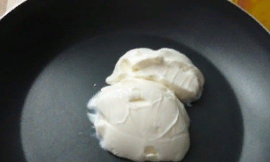 Потім у сковороду викладемо майонез.