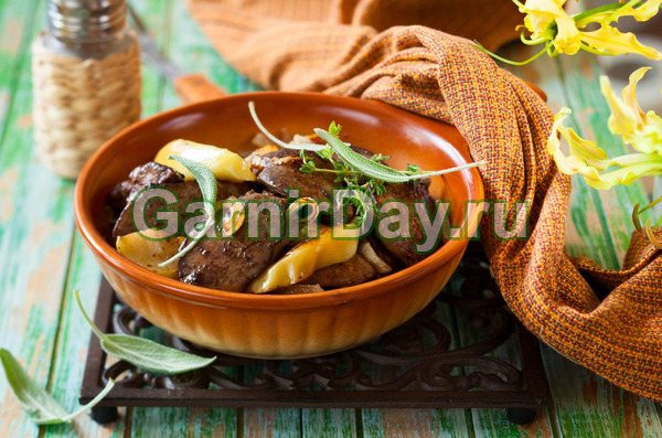 Рецепт дуже унікальний, хоч і зовсім простий у приготуванні. Яблука надають страві особливий смак та аромат. А печінка просто тане у роті.