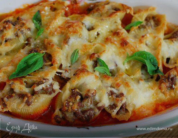 Фаршировані макарони з фаршем під соусом бешамель готують у духовці. Однак спочатку начинку обсмажують на сковороді.