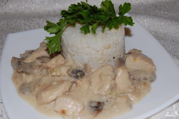 - Готова курочка розбирається на м’ясо. Його скибочки укладаються у невеликі судочки. Можна для краси розкласти поруч різні фігурки з вареної моркви.