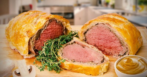 Яловичина Веллінгтон (класичний рецепт можна здешевити за допомогою використання фаршу) стане хорошим варіантом для людей, які люблять м’ясо, що тане в роті.