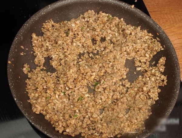 8. Відразу після цього до грибів необхідно додати подрібнену петрушку (потрібно 2 ст. л.) та панірувальні сухарі.