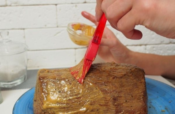 4. Після смаження м’ясо слід дістати зі сковороди, повністю обмазати гірчицею і залишити для охолодження.