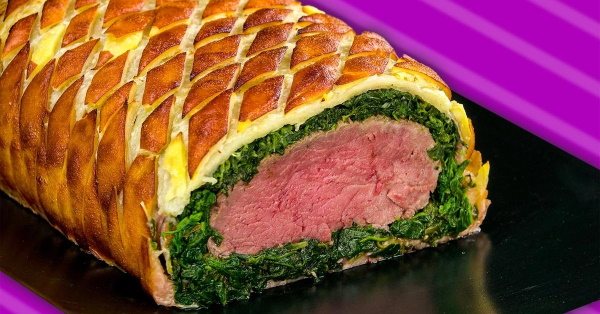 Яловичина Веллінгтон (класичний рецепт можна видозмінити додаванням шпинату) у такому варіанті набуває цікавого смаку та кольору, а також збагачується корисними речовинами, що містяться в зелені.