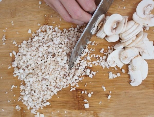 6. Гриби слід помити та подрібнити, дрібно нарізавши.