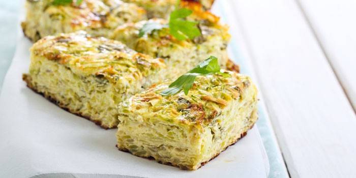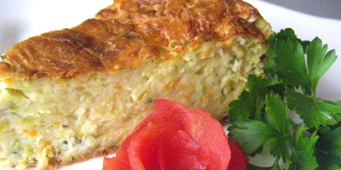 - далі суміш потрібно помістити у форму, попередньо змащену олією. Поміщаємо форму в духовку, яку розігріваємо до 180 градусів. Запіканку необхідно випікати протягом півгодини, після чого її можна подавати до столу.