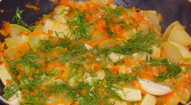 Для гасіння порізані кабачки також не потрібно розморожувати, адже рідина знадобиться для томлення та утворення пари. Тушать заморожені цукіні різноманітними способами та використовуючи всілякі пристосування.