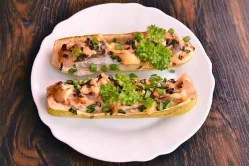 Запікають човники в духовці при температурі 180 ° C протягом півгодини, готовність рекомендується перевіряти вилкою. Якщо додати майонез з часником, страва вийде менш дієтичною, але смачнішою.