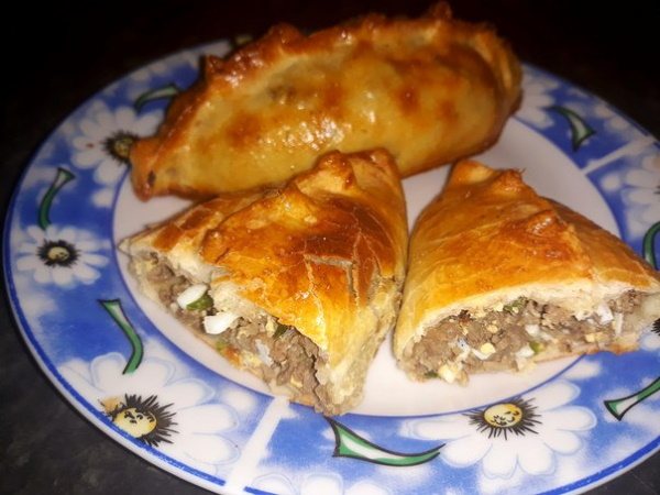 - Потім кожну з них потрібно розкачати в тонкий пласт і сформувати пиріжки, начиняючи їх фаршем, що остигнув.