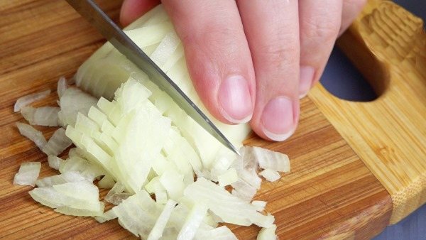 - Потім потрібно очистити цибулини та дрібно нарубати їх.