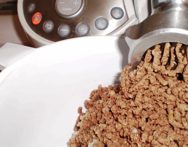 - Далі охолоні шматки варто подрібнити за допомогою м’ясорубки.