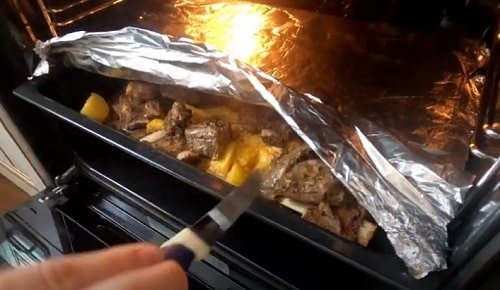 Яловичі ребра в духовці з картоплею – рецепт у фользі