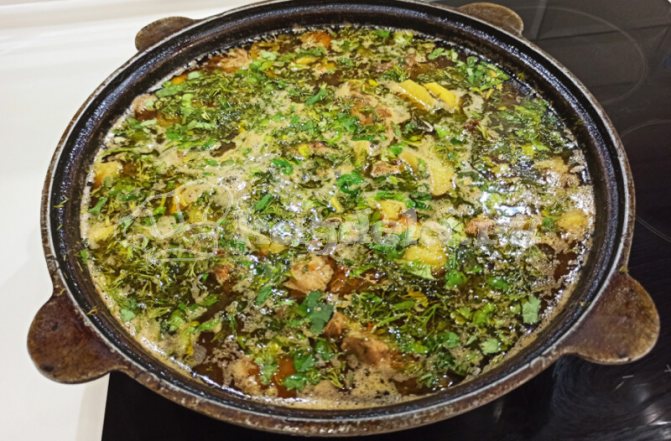 Готовність картоплі перевіряємо звичайним ножем, якщо вона легко розламується – значить можна знімати з вогню. Приблизно для його приготування потрібно 15-20 хвилин. Перш ніж відключити нагрів, посипаємо зверху подрібненою зеленню.