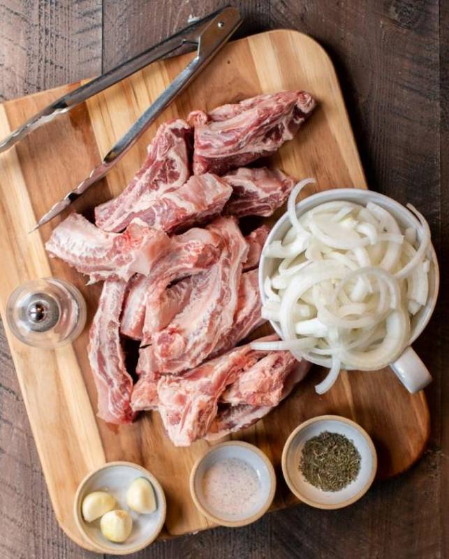 1. Для особливо потрібна розпиляна на товсті шматки яловича гомілка з мозковою кісткою, краще попросити м’ясника розділити голяшку на порційні частини. Правильні шматки яловичини мають бути товщиною 4-5 сантиметрів.