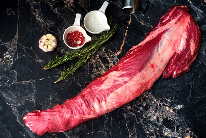1. Якісний шматок яловичини має бути насиченого рожевого кольору з тонкими білими прошарками жиру.