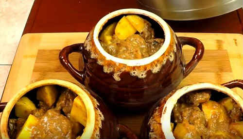 М’ясо з картоплею в горщиках вважається порційною стравою.