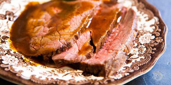 Готову яловичину дістаньте із духовки, накрийте фольгою та залиште на 20–30 хвилин. Після цього наріжте і подавайте до столу з винним соусом.