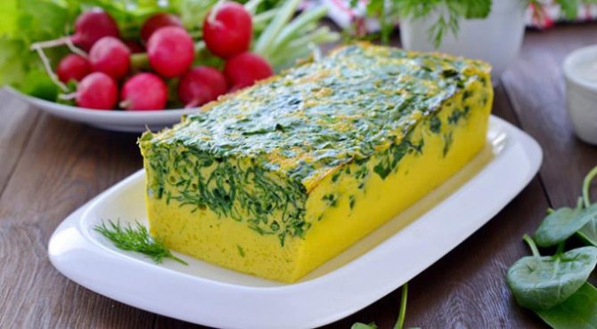 Омлет, приготовлений у духовці зі шпинатом – корисна та смачна страва. Шпинат для його приготування можна використовувати свіжий та свіжоморожений. В останньому випадку, потрібно дати листочкам трохи відтанути.